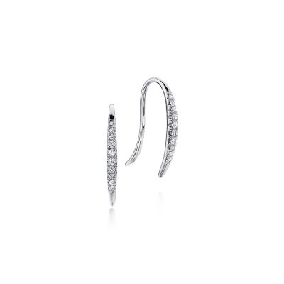 Our earrings thread through the ears with long, looping earwires of 18kt white gold. The earrings feature a vertical bar accent, which is studded with diamonds for an elegant glowing touch.