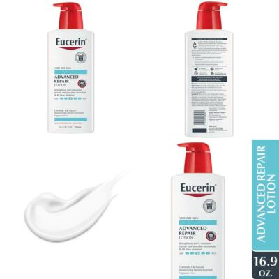 59. Shop the biggest brands in skincare, haircare & beauty. Eucerin, Intensive Repair Lotion, Fragrance Free, 16.9 fl oz (500 ml) 21304. Try Eucerin Sun Gel-Cream Dry Touch Sensitive Protect SPF 50+ or SPF 30 (which has an ultra-light, gel-cream texture), Eucerin Sun Spray Transparent Dry Touch Sensitive Protect SPF 50 (as aerosol spray) or Eucerin Sun Spray Transparent Sensitive Protect SPF 50 (a pump spray). Eucerin Advanced Repair Body Lotion provides 48 hour moisture for skin that looks and feels healthy. For Very Dry Skin Advanced Repair Hand Cream. Advanced Repair Hand Cream.
